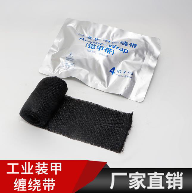 工業(yè)裝甲纏繞帶密閉于鋁塑復合袋中,即開即用,使用時無需特殊設備,只要簡單地將繃帶?于水中數(shù)秒,然后纏繞成形,即可在10分鐘內(nèi)完成固化承重,18小時后則能體現(xiàn)完美的機械防護性能。